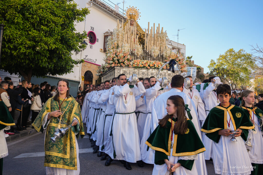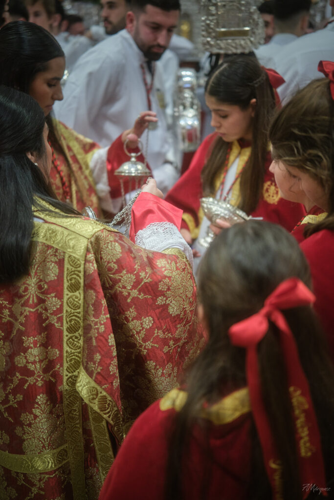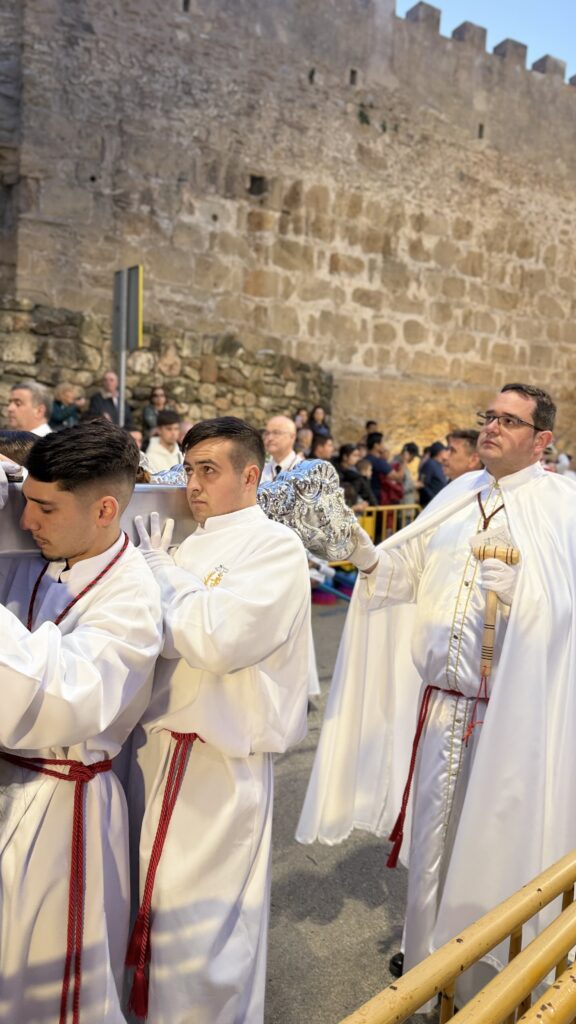 Gracias a nuestros hombres y mujeres de trono, que con sus hombros y su corazón dan vida y movimiento a lo más sagrado de nuestra cofradía. Gracias a los acólitos y monaguillos, a los músicos que nos acompañaron, que con cada nota emocionaron al pueblo, al equipo de albacería, a la comisión externa y a todos los que, desde cualquier rincón y de mil maneras distintas, hicisteis grande este día.